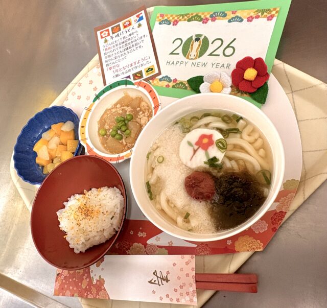 ご飯 年明けうどん 大根のそぼろあんかけ フルーツ
