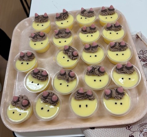 おやつには、スタッフ手作りの“鬼のプリン”が登場。