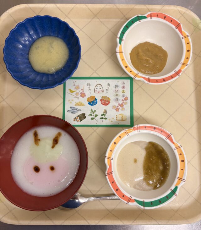 管理栄養士と厨房スタッフが工夫を凝らし、常食の方も嚥下調整が必要な方も、同じ“節分”を感じられるようにメニューを整えました。