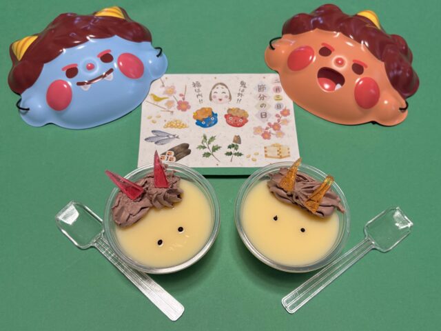 おやつには、スタッフ手作りの“鬼のプリン”が登場。
