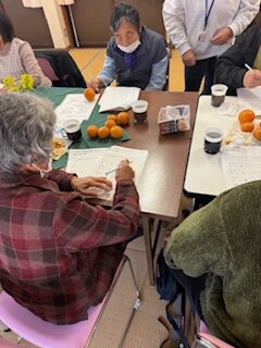 紙とプロジェクターを使った脳トレゲームをして学生時代のように教室でお勉強をしているような気持になられていた様子もありました。