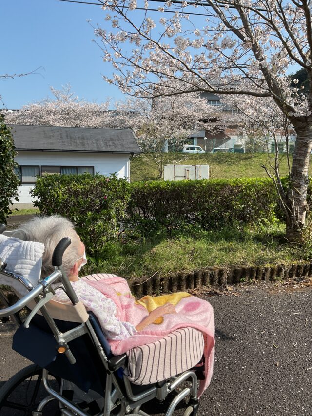 車椅子でゆっくりと散策しながら、満開の桜を間近で眺めたり、春の香りを楽しんだりと、皆さま思い思いに春の景色を楽しまれていました。