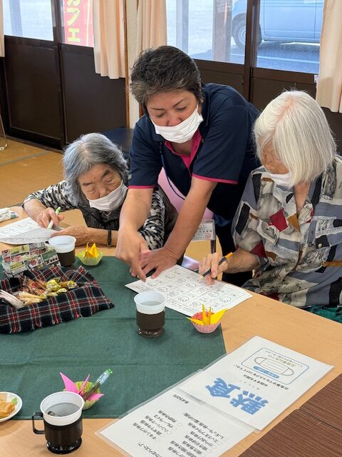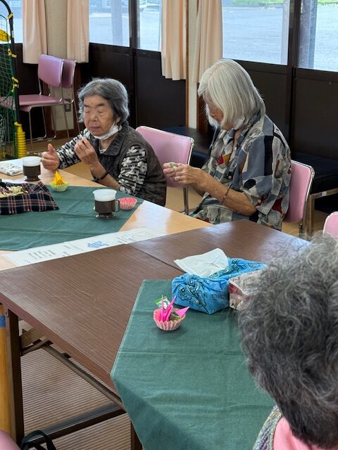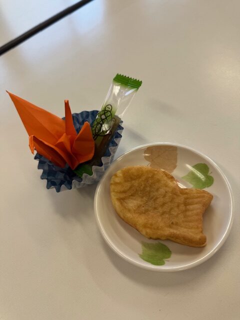 9月の希望ヶ丘カフェは第三火曜日の16日にありました。敬老の日の次の日とあって『めでたい』という事て、ミニたい焼き🐟✨と、折り紙の鶴と亀(おつまみ昆布にスタッフのイラスト)をご覧ください✨✨雰囲気だけでもめでたぃ感じではありまんか❔💦(笑)